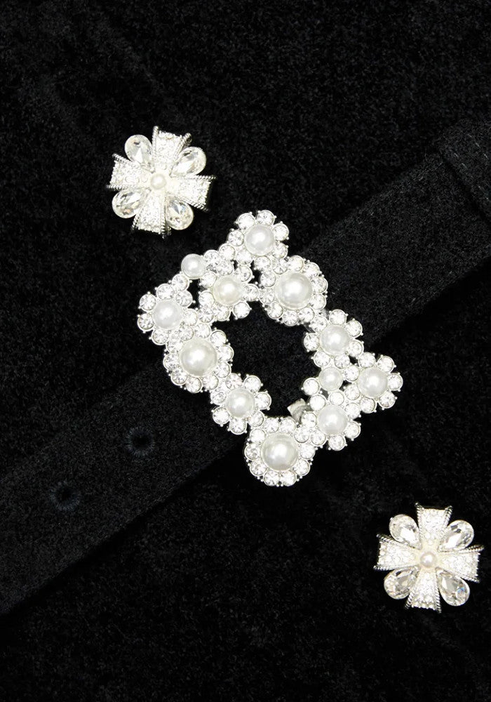 Short Sleeve Crystal Button Midi Dress Black